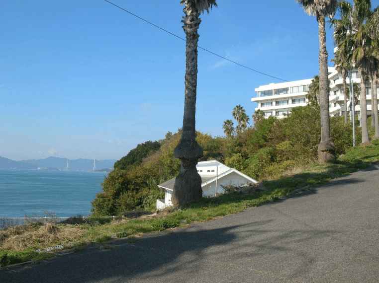 ところで生口島のフェリー乗り場から 生口大橋までの街路樹が