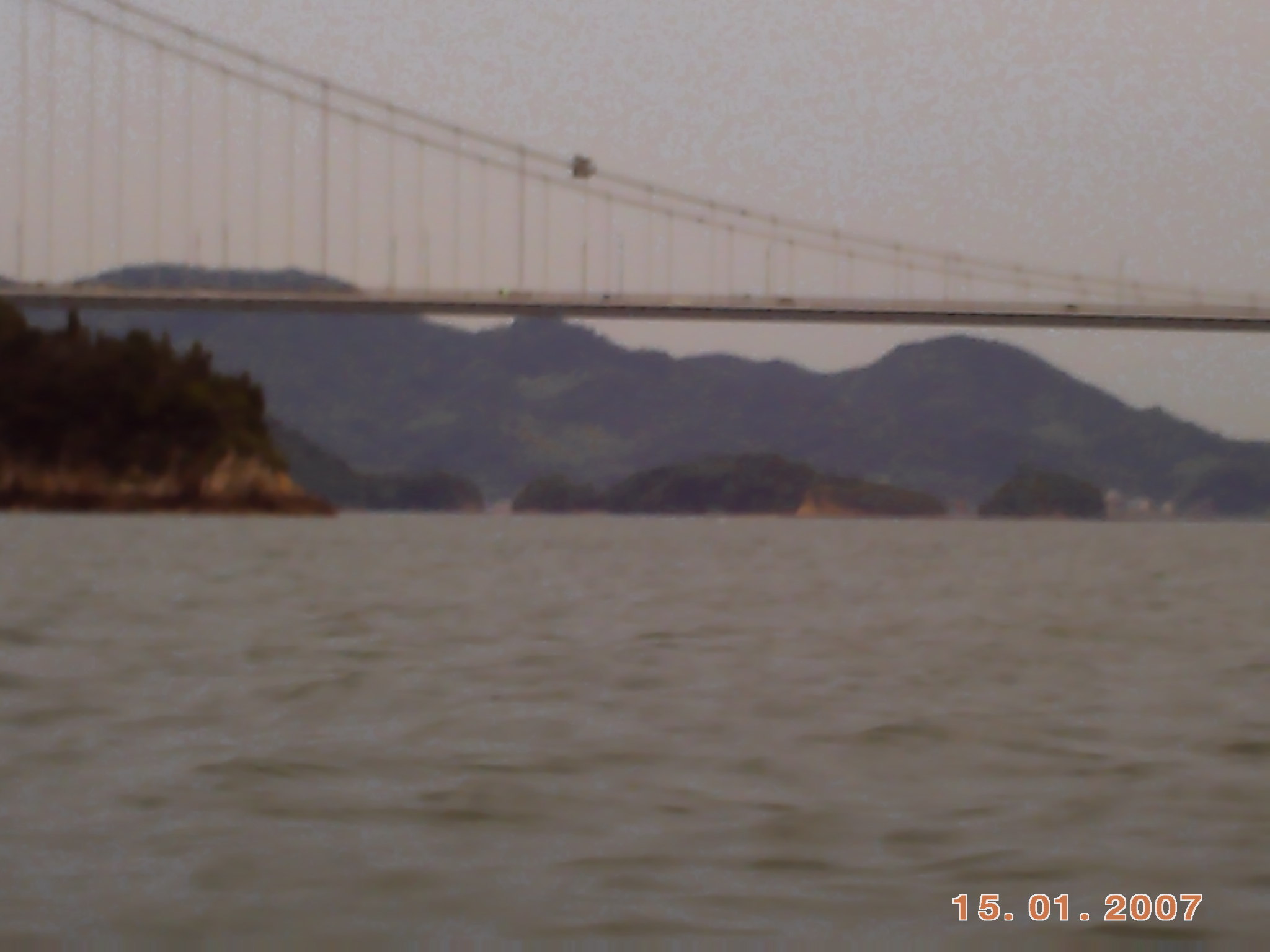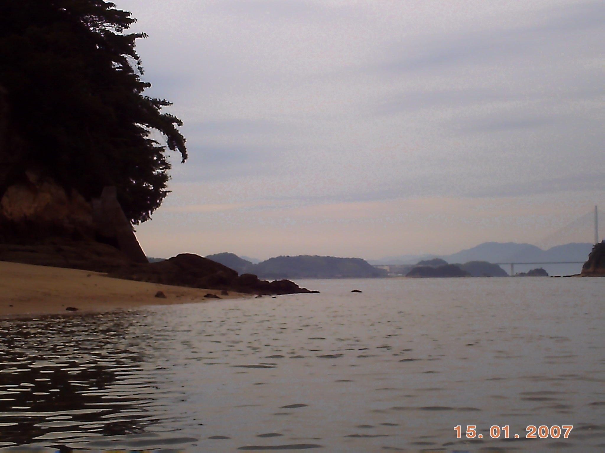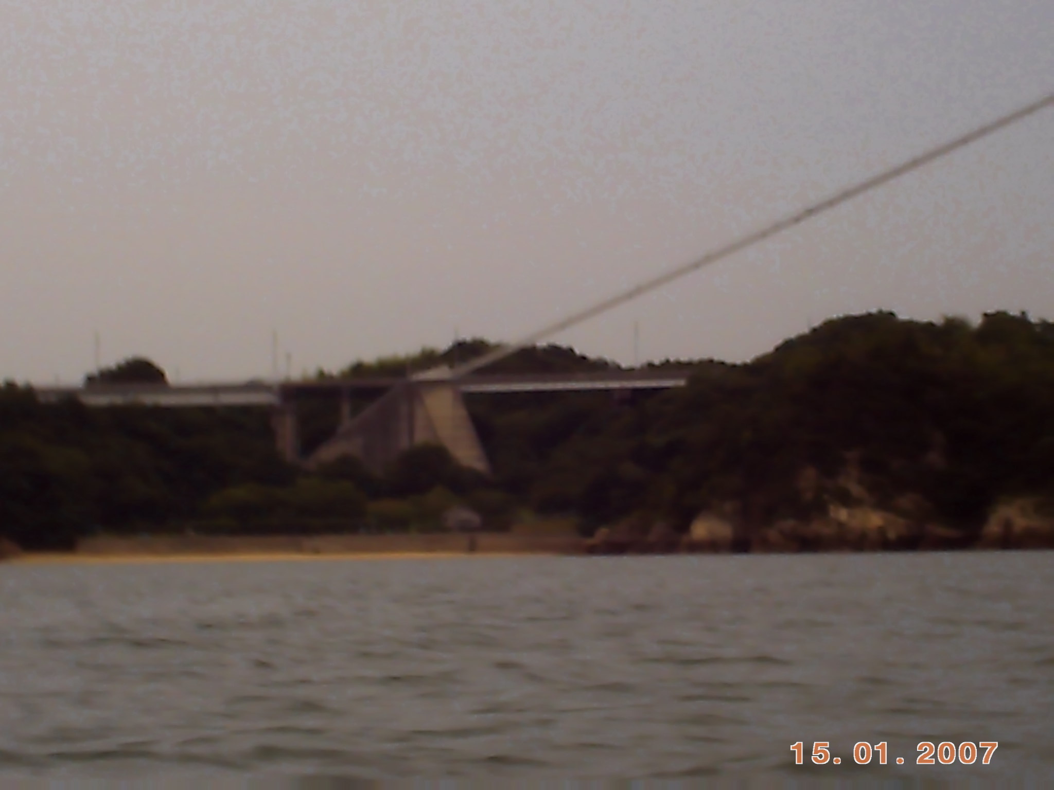 橋を渡って 因島の折古の浜からだと、僕の漕力の6km/hなら、